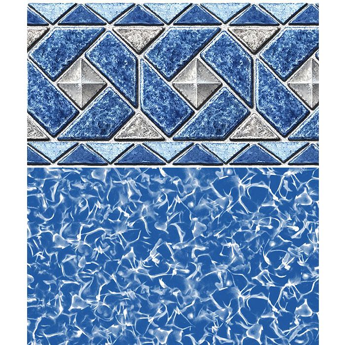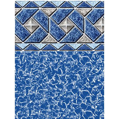 Blue and gray tile graphics in a diamond pattern printed on the upper portion of the wall and swirl print on the lower wall and floor. Swimline 18'x33' Oval Sonoma Unibead 54" Universal Bead vinyl liner. This heavy gauge Uni-Bead will fit overlap, j-hook or bead receivers keeping decorative tile lines or waterline graphics straight and uniform. If you are unsure of your liner type, this is the one to get. Fits most any pool type and made from 100% virgin vinyl. Protected from ultraviolet fading and chemical degradation. Best cold crack resistance in the industry. 25 year warranty.
