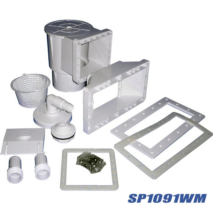 Hayward's widemouth pool skimmer is a great piece to replace when changing your pool liner. Skimmer screw holes become stripped out over time and area around the screws often becomes brittle and cracks. Don't start off your fresh liner change with a decrepit leaky skimmer box. Do it the right way and it will last for years. This kit includes everything needed to completely replace the skimmer and return jet. Very nice kit. Includes skimmer body, widemouth throat extension, face plate, gasket set, leaf basket, screws, weir door, skimmer lid, vacuum plate, return fitting, and hose connectors.